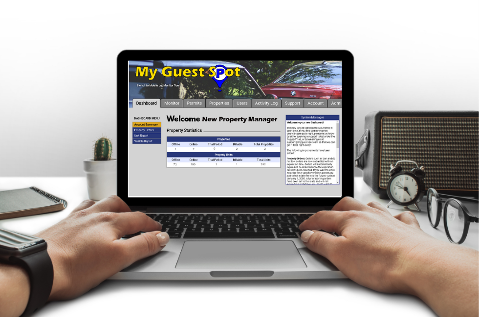 MyGuestSpot.com is a cloud-based suite of parking management tools that allow residential property managers (apartment complexes, HOAs, COAs, etc.) and parking enforcement professionals to automate resident and guest parking for their communities.